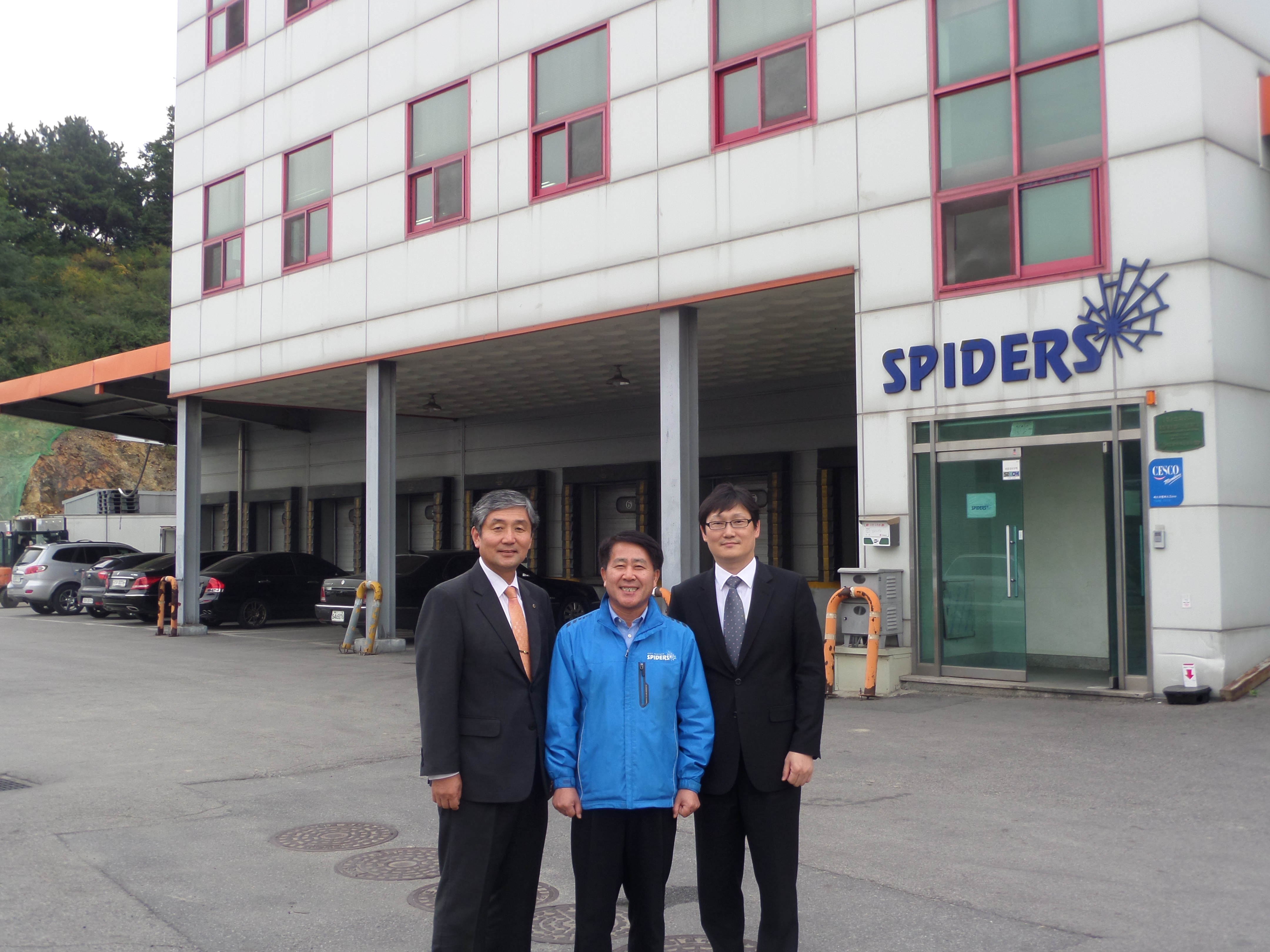 - 방문대상자 성함 : 정명* 동문(생공81) 확인번호 : 20140917-01 - 소 속 : ㈜스파이더 대표이사 - 방문자 성명 : 대학발전본부장 김윤*, 이강*, 황원* - 방문일시 : 2014. 8. 17(수) 13:30 – 14:30 - 방문장소 : ㈜스파이더 본사( 경기도 광주시 오포읍 추자리 323-10 ) - CJ에 이어 2위의 식자재공급 업체이며, 개인사업 규모로는 국내 최고의 식자재 공급업체로 전국 규모의 독자적 물류망을 갖추고 단체급식 및 프랜차이즈 업에도 사업을 확장하고 있는 중견기업임. - 대학졸업 후 ㈜샤니에 입사하여 초기에는 ‘파리크라상’ 등 제빵업계에 종사하였음. 업무능력을 인정받아 감사담당 임원을 마지막으로 퇴사하여 1997년에 3자 물류사업을 주업으로 독립함. - 독립 후 물류사업을 기반으로, 수도권 2개소, 대전, 대구, 부산 등 전국 5개소 유통망으로 사업을 확장하여 운영 중이며, 식자재 도.소매 위탁물류 서비스, 프랜차이즈 유통물류 대행, 단체급식으로 영역을 점차 확장하고 있음. - 경기도 광주 본사에 관리 인력으로 60여명이 근무 중이며, 수도권과 전국 유통서비스 제공 인력이 350명으로 5,000여개 사업장과 거래 중이며, 연간 900억원 정도의 매출을 보이고 있음. - 인간중심의 경영관으로 사옥벽면에 직원자녀 사진을 거는 등 직원과의 친화에 많은 관심을 가지고 있으며, 무척 밝고 겸손한 인상을 받음.