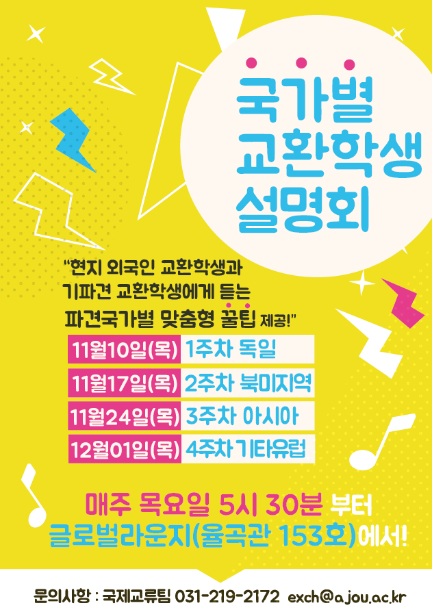 [국제교류팀] 국가별 교환학생 설명회-북미편 (11월17일 17시 30분)