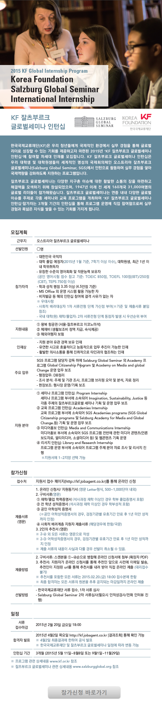 KF 잘츠부르크 글로벌세미나 인턴십 모집 안내