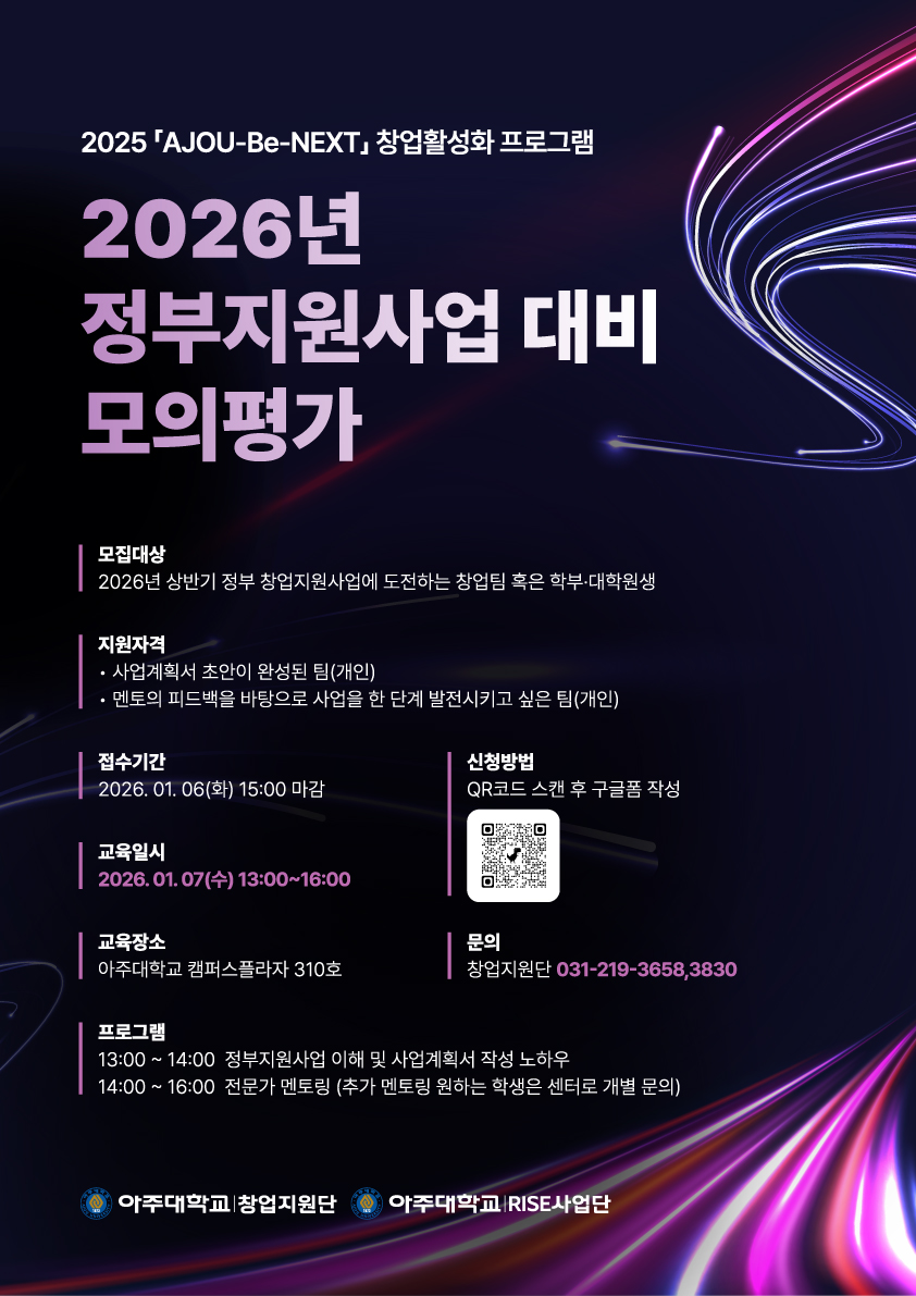 기타 아주대학교 반도체 대학혁신플랫폼(GUIP) 25.12.29 조회수 6930