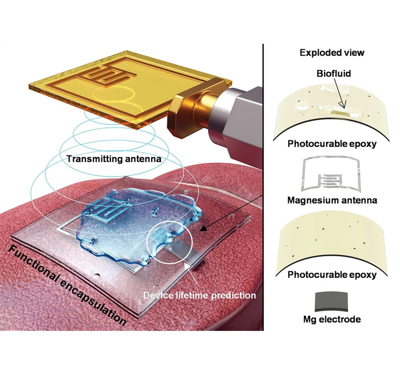 기계공학과 한승용 교수 연구팀이 유연 생체이식형 센서의 신뢰성 높이고 수명을 예측할 수 있는 새로운 구조를 개발하는 데 성공했다.지난 4월27일 한승용 교수(기계공학과·대학원 융합의과학과, 사진 제일 왼쪽)는 성균관대학교 연구팀과 함께 생체에의 유체 침투를 위해 사용되는 새로운 기능성 봉지화 구조를 개발했다고 밝혔다. 관련 연구는 ‘유체 침투를 무선으로 즉시 감지할 수 있는 기능성 봉지화 구조 개발(Functional Encapsulation Structure for Wireless and Immediate Monitoring of the Fluid Penetration)’ 이라는 제목의 논문으로 재료공학분야 국제 학술지 <어드밴스드 펑셔널 머티리얼즈 저널(Advanced Functional Materials Journal, IF=18.808, JCR 상위 4.341 %)> 4월23일자에 게재되었다. 이번 연구에는 우리 학교 대학원 기계공학과 석사과정의 임다슬 학생(사진 가운데)과 박사과정의 홍인식 학생(사진 제일 오른쪽)이 제1저자로 참여했고, 성균관대학교 전자전기공학부의 원상민 교수팀도 연구에 함께 했다. 생체이식형 유연 장치의 신뢰성을 높이고 장기간 사용하기 위해서는 뛰어난 성능을 가진 봉지 층이 필수적이다. 생체이식형 유연 장치에서 봉지 층은 체액을 차단시켜주는 중요한 역할을 한다. 봉지 층의 결함으로 전자 장치 내로 체액이 침투하게 되면, 체내 누전에 의한 감전 사고가 발생하거나 측정 데이터의 신뢰도가 떨어지는 문제를 일으킬 수 있다. 이러한 문제를 해결하기 위해 아주대-성균관대 공동 연구팀은 장치 내로 침투하는 체액을 실시간 모니터링할 수 있는 봉지 층을 연구했다. 마그네슘 박막이 체액과 반응하여 녹을 때 높은 전기적 저항 변화가 발생할 수 있도록, 두께가 감소함에 따라 물질의 비저항이 증가하는 표면 산란 효과를 이용한 것. 연구팀은 수십 나노미터의 마그네슘 박막을 고분자 층에 삽입하여 기능성 봉지 층을 제작하였으며, 침투하는 체액의 양을 정량적으로 측정함으로써 소자의 작동 수명 예측과 봉지 층 내부의 핀홀(pin-hole)을 감지하는 기능을 선보였다. 연구팀은 이번 성과를 바탕으로 기능성 봉지화 층을 통해 ▲신경 인터페이스 ▲심장 박동기를 비롯한 임상 연구 등 다양한 생체 이식형 장치 응용분야에 적용하여, 장치의 안정성과 신뢰성을 향상시킬 수 있을 것으로 기대하고 있다.연구에 참여한 임다슬 학생은 "학부 3학년부터 기계공학을 복수전공 하였고, 더 깊이 있는 공부를 위해 대학원에 진학하게 되었다"며 "전공에 대한 두터운 지식이 필요해 연구를 진행하는데 어려움도 있었지만, 교수님들과 동료 학생들이 많이 도와준 덕분에 좋은 성과를 얻을 수 있었다"고 전했다. 이번 연구는 과학기술정보통신부와 환경부가 추진하는 우수신진연구, 환경보건 디지털 조사 기반 구축 기술개발사업의 지원으로 수행되었다.생체이식형 센서의 수명 예측 봉지화 구조(왼쪽), 봉지화 구조의 생적합성 실험(오른쪽)