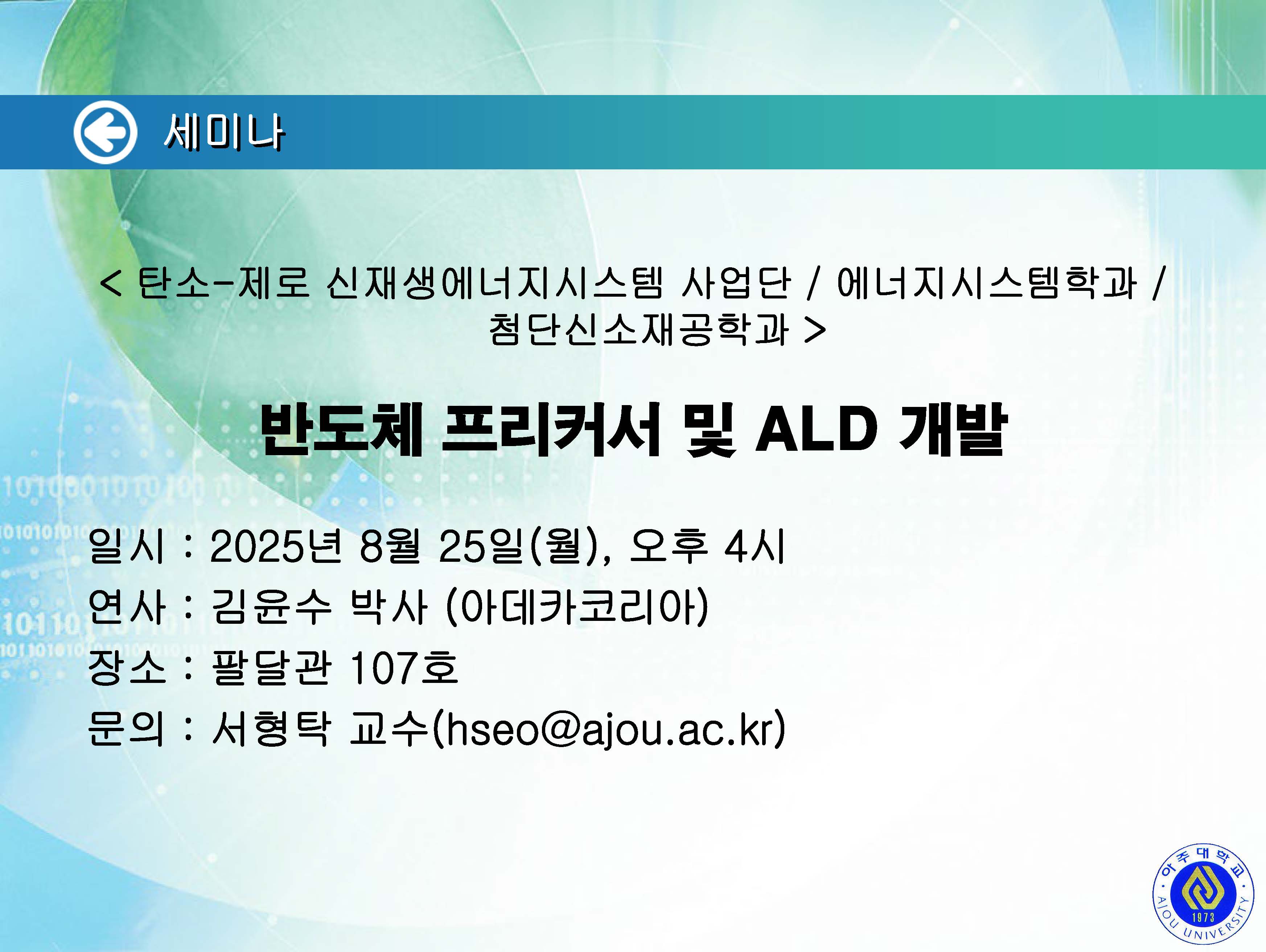 | 1791 | 세미나/포럼 | 교내 | 2025-09-03 | ||